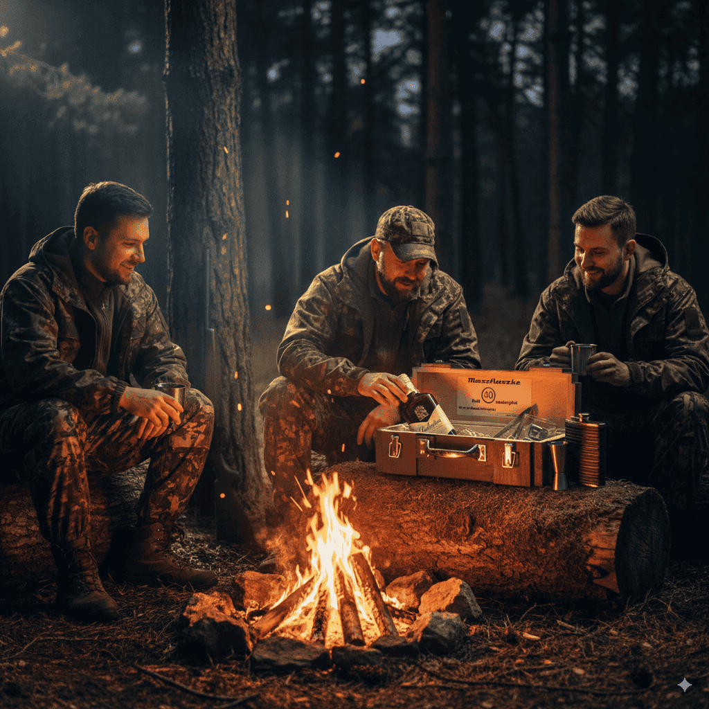 Prezent dla leśniczego – Skrzynka na alkohol – Myśliwski Ekwipunek ZESTAW PREMIUM