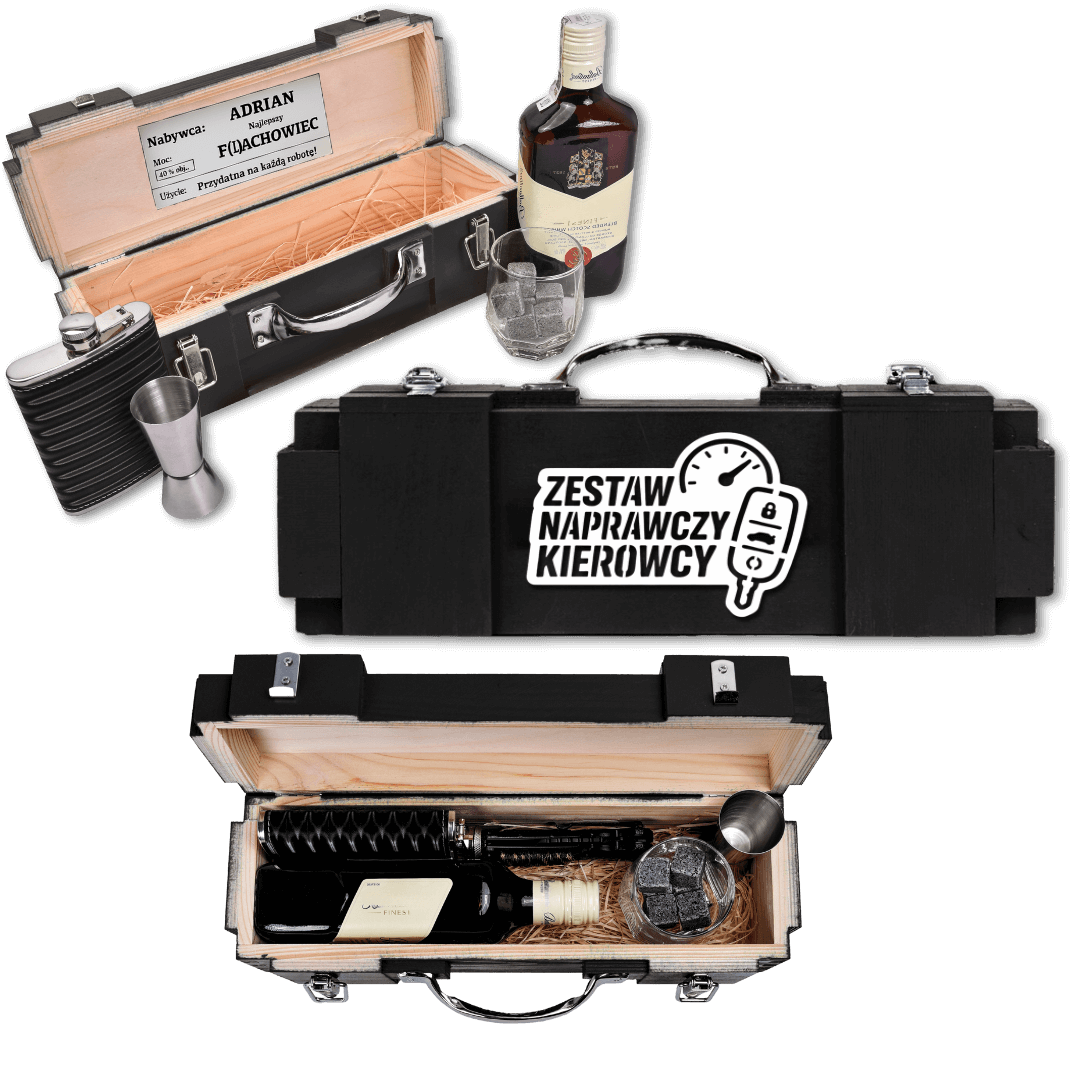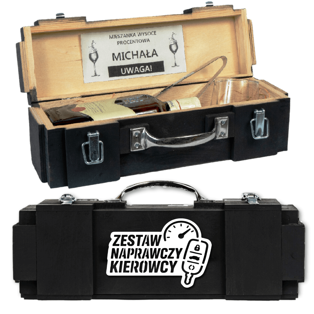 🎁 Skrzynka na alkohol – Zestaw Naprawczy Kierowcy – ZESTAW PREMIUM to oryginalny prezent dla kierowcy zawodowego, który łączy humor z solidnym wykonaniem.
