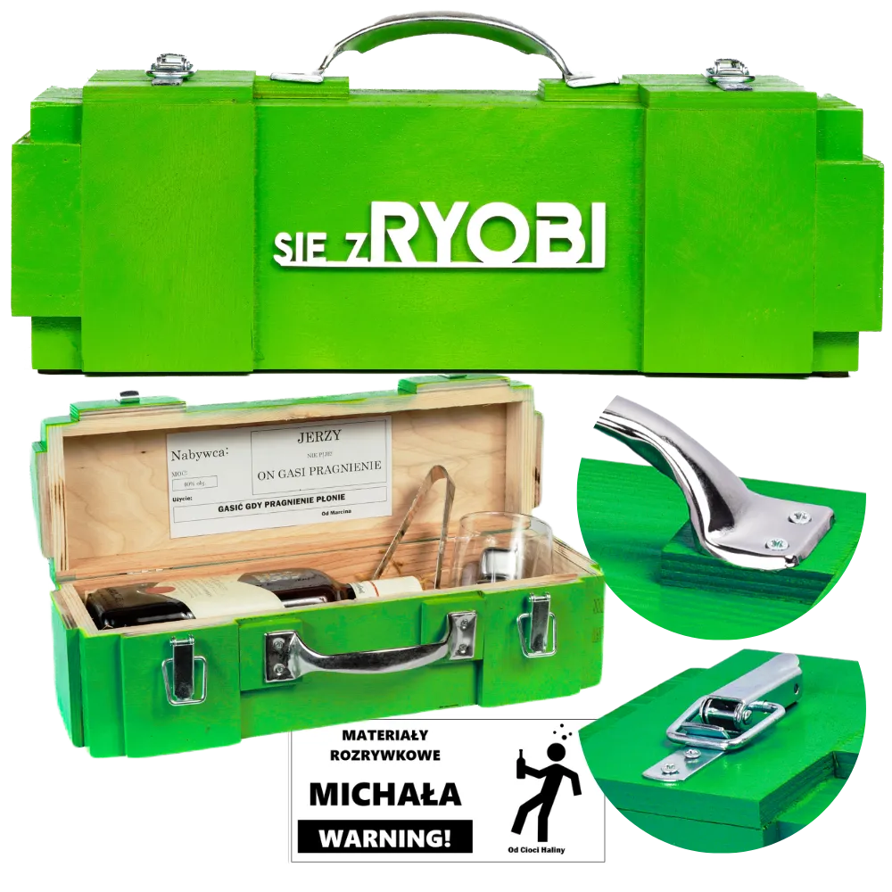 SiezRYOBI Skrzynka prezent dla stolarza mechanika imitacja RYOBI to nietuzinkowe rozwiązanie dla osoby, która szuka nie tylko praktycznego prezentu, ale także chce być zapamiętana na długi czas przez obdarowaną osobę.