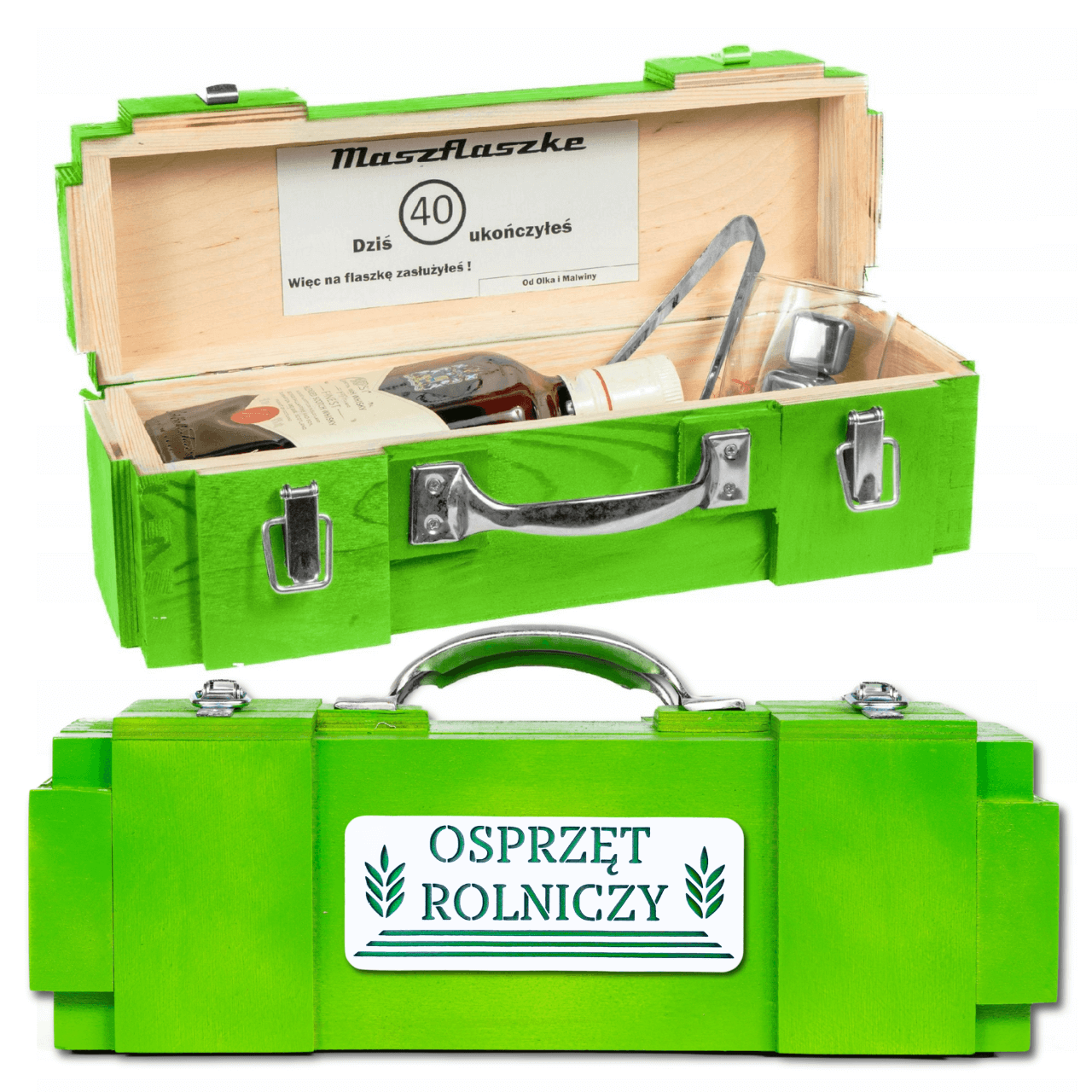 Chcesz sprawić niespodziankę bliskiej osobie? Śmieszny prezent dla rolnika – Skrzynka na alkohol – OSPRZĘT ROLNICZY – ZESTAW PREMIUM jest dostępny w naszym sklepie internetowym!