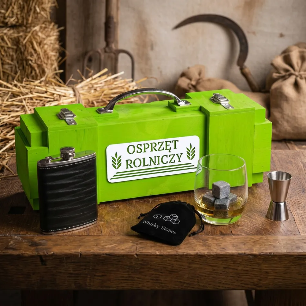 Chcesz sprawić niespodziankę bliskiej osobie? Śmieszny prezent dla rolnika – Skrzynka na alkohol – OSPRZĘT ROLNICZY – ZESTAW PREMIUM jest dostępny w naszym sklepie internetowym!